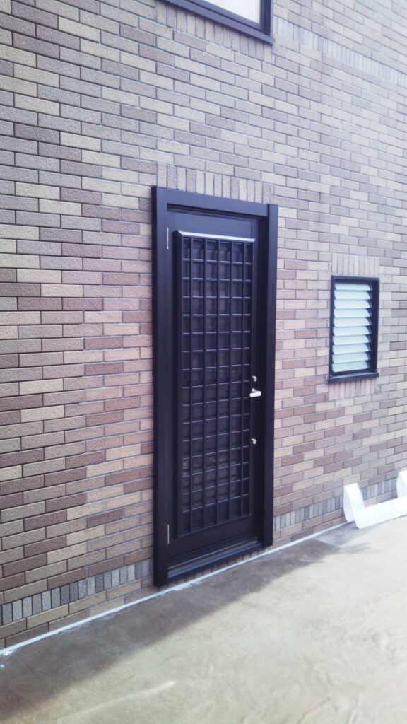 新しくバルコニーを鉄骨で組んで、その出入り口のために、勝手口ドアに変更しました。